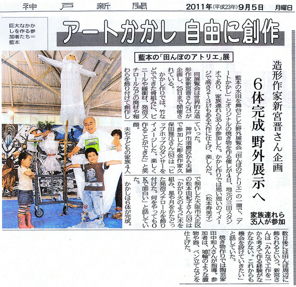 それぞれが芸術的センスを発揮して、熱気あふれる制作風景でした。出来上がった作品は、9月25日フィナーレのお祭りの時に田んぼ会場に展示されます。