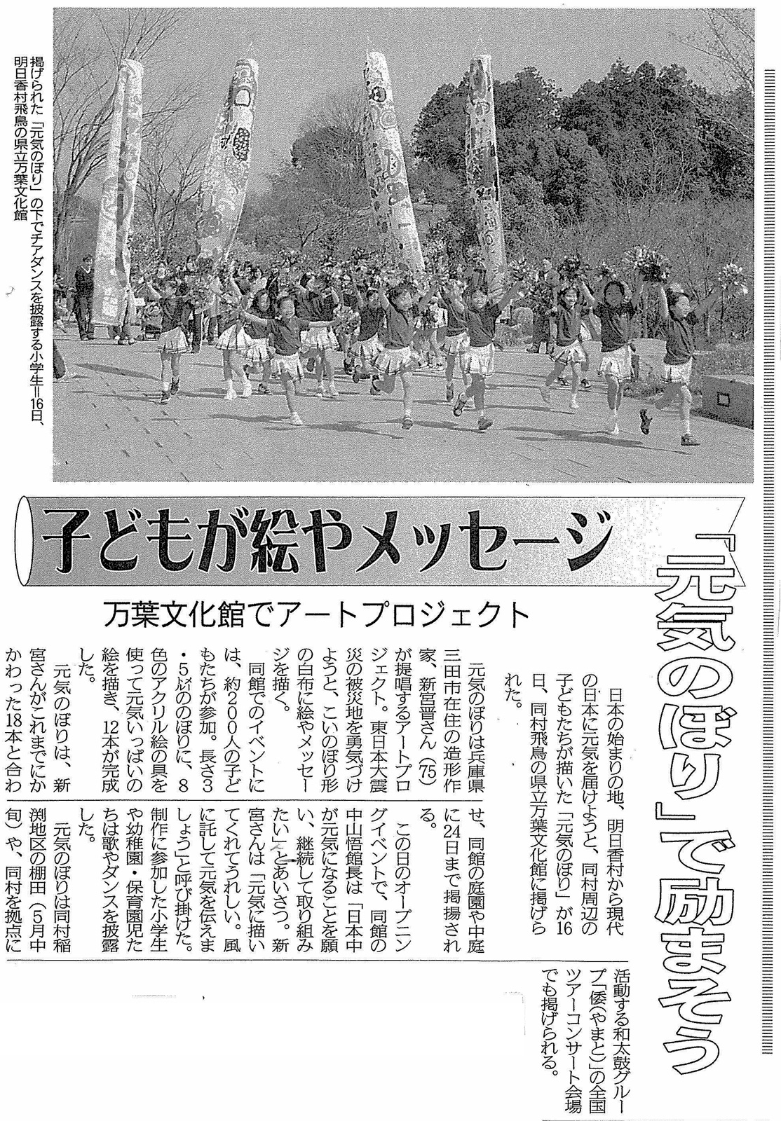 3月16日午前11時から、元気のぼり掲揚のオープニングイベントが万葉文化館で開かれました。