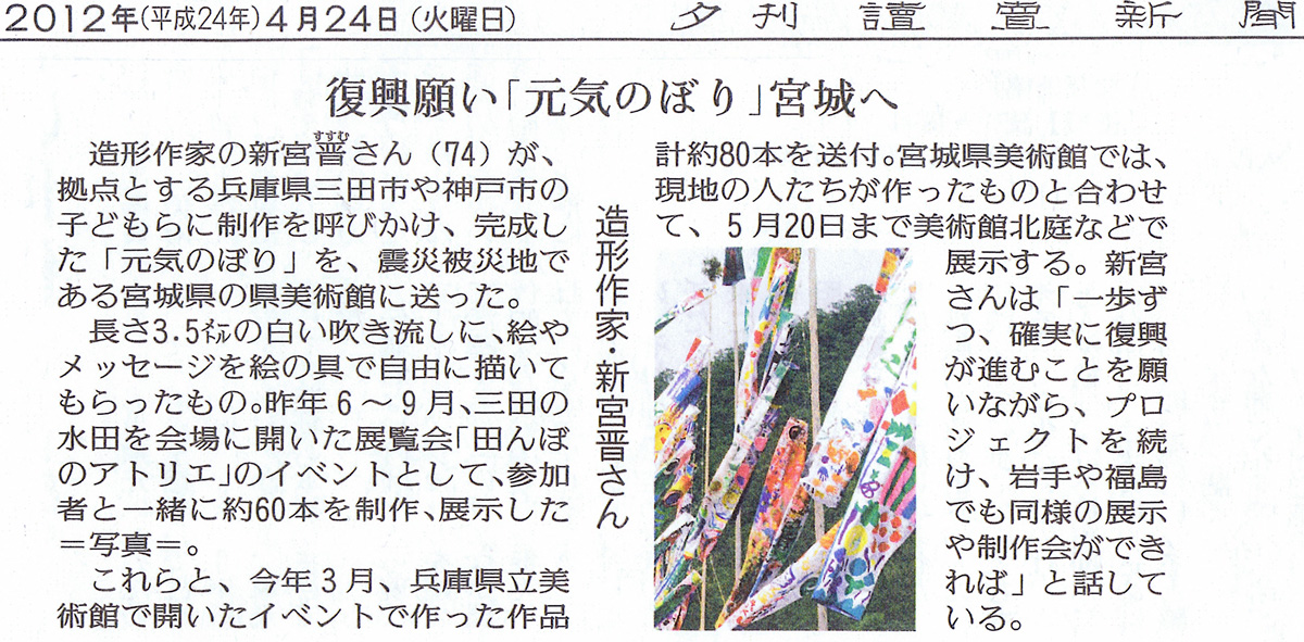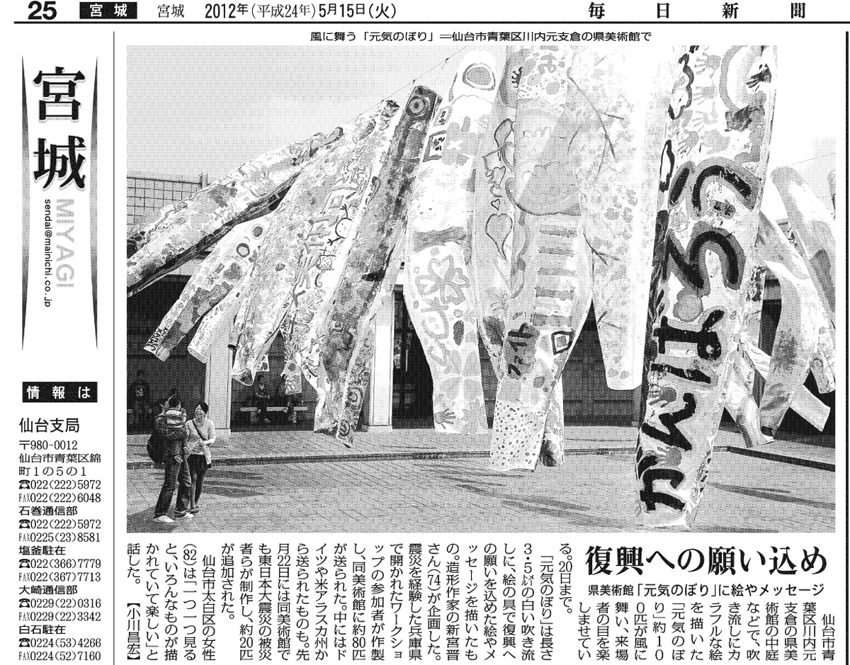 宮城県美術館(仙台)で新宮 晋の講演会が開かれました。元気のぼりの由来や、ウインドキャラバンの活動の話に、地元の方の関心が集りました。
