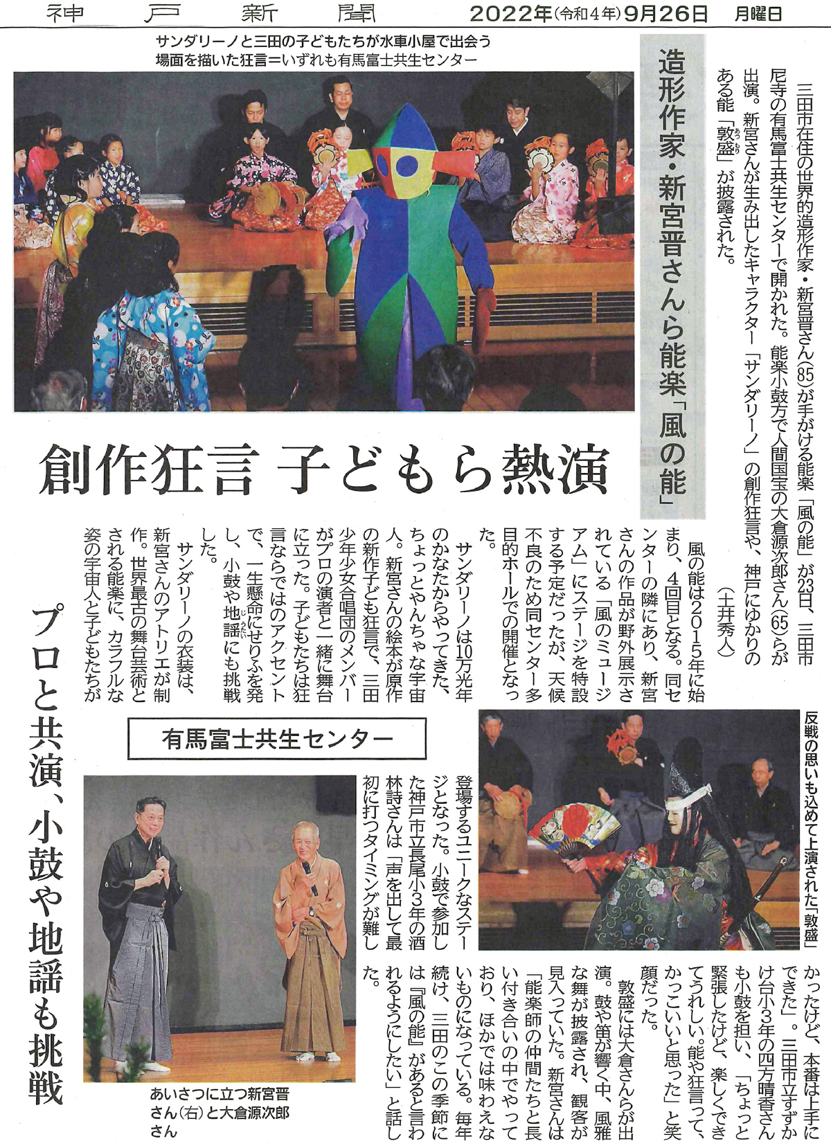 「第四回 風の能」開催にあたり2022年9月3日(土)13時より「第1回 風ミュ・サポーターズミーティング」を開催します。