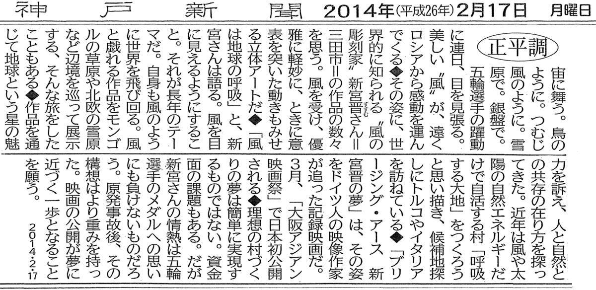 ドキュメンタリー映画「ブリージング・アース:新宮 晋の夢」第9回大阪アジアン映画祭上映