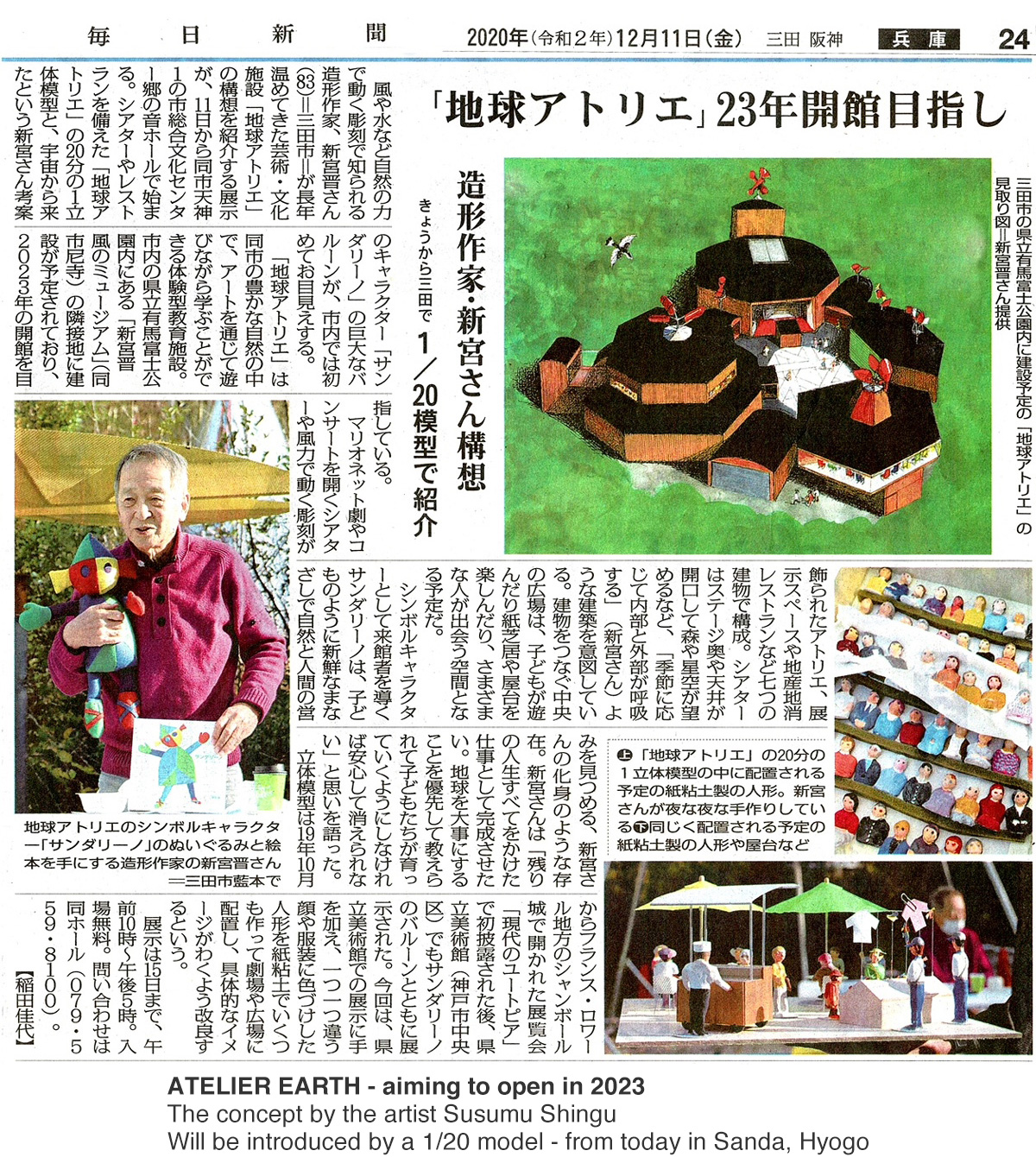 ATELIER EARTH is an art and cultural facility scheduled to be constructed adjacent to Susumu Shingu WIND MUSEUM in Arimafuji Park in Sanda, Hyogo. The concept of ATELIER EARTH will be exhibited.