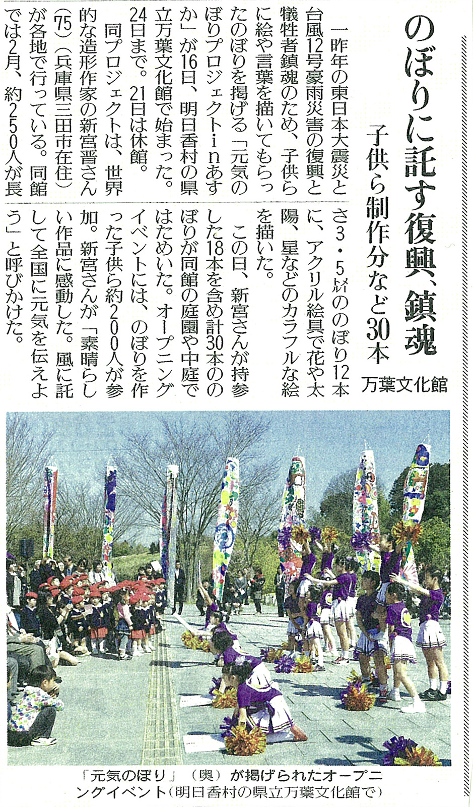 The opening event of Genki-nobori exhibit was held at Nara Prefecture Complex of Man'yo Culture from 11 am on March 16, 2013.