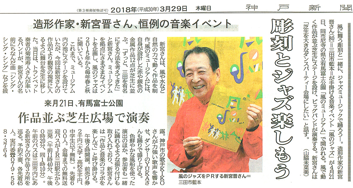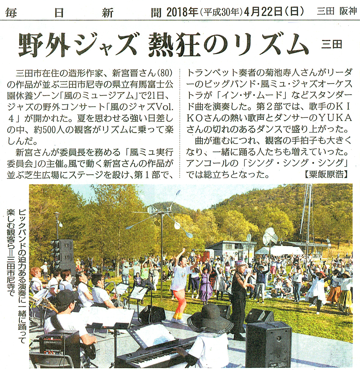 It was the first trial to build the stage among the wind-sculptures of Susumu Shingu WIND MUSEUM. The powerful sound of Kazemü Jazz Orchestra swang together with the sculptures. The second part was composed of the wonderful songs by KIKO and the energetic dance by YUKA. In the end all the spectators joined in the dance. What a hot and joyful concert it was! We can't wait for the next!