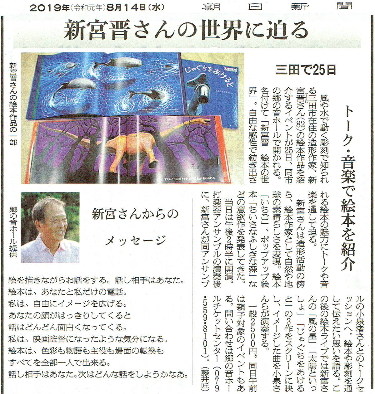 For inquiries: Ticket center of SATONONE HALL(9:00 - 22:00). 〈Closed〉 On Wednesdays Phone:079-559-8101(10:00 - 19:00)