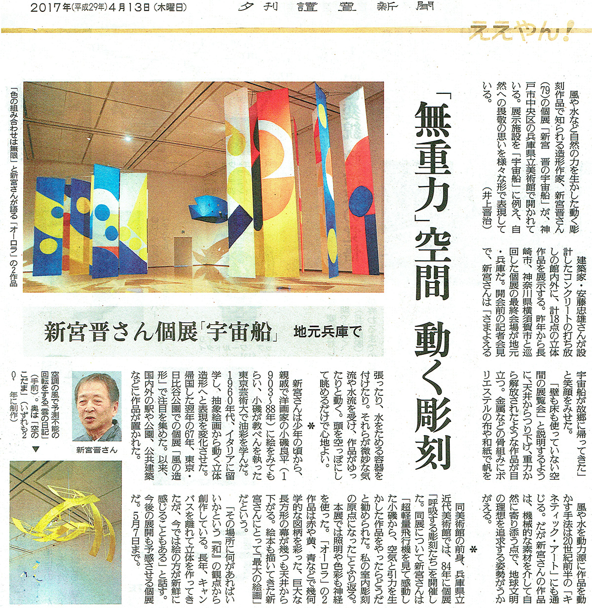 Susumu Shingu will transform Hyogo Prefectural Museum of Art into a spaceship with his 17 sculptures of which most of them are new works. SPACESHIP - Susumu Shingu landed at Nagasaki Prefectural Art Museum from June to July and then traveled to Yokosuka Museum of Art from November to December in 2016.